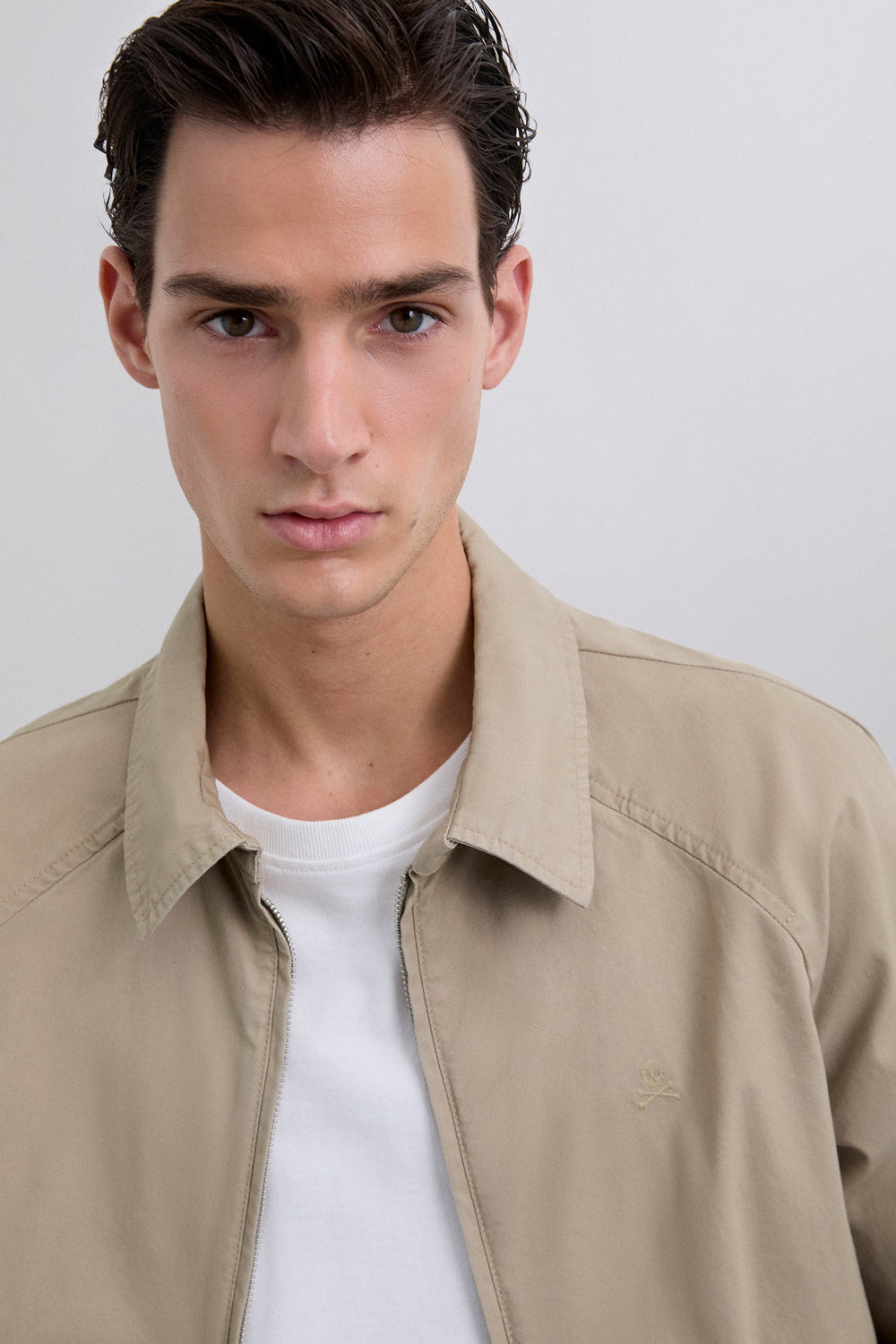 Cardigan Bomber confecionado em 100% algodão BCI. Forro. Corte regular. Zip de duas vias. Dois bolsos à frente. Punhos ajustáveis com botão. Cintura levemente elástica. Skull bordada no tom.