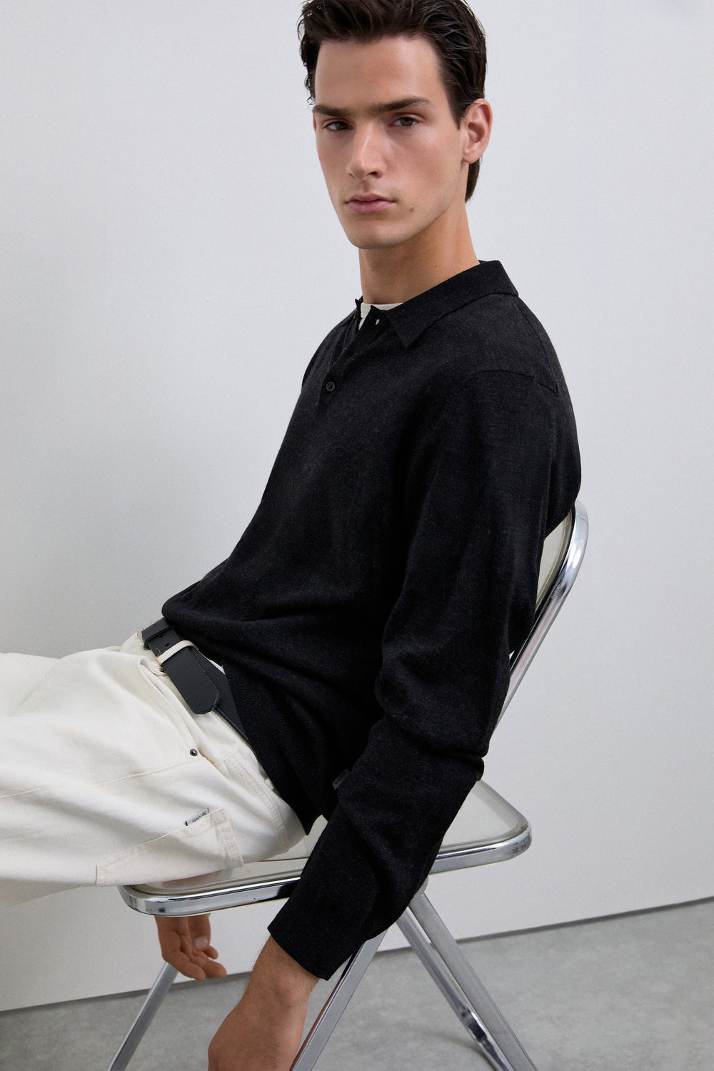 Sweater confecionada em 100% lã. Manga comprida. Gola de camisa polo. Fecho com botões.